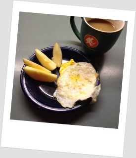 Early morning/pre-WOD | 1 fried egg, 1/2 apple, coffee with coconut milk (from can)