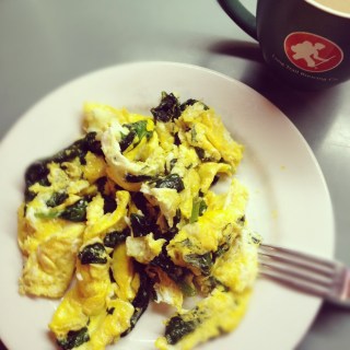 Late morning/Early afternoon | 3 eggs scrambled in coconut oil with spinach, more coffee with coconut milk