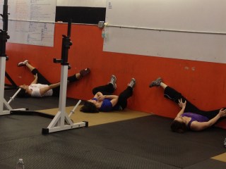 Some of the ladies of TFCF mobilize post-WOD. Make it fun – do it with friends!